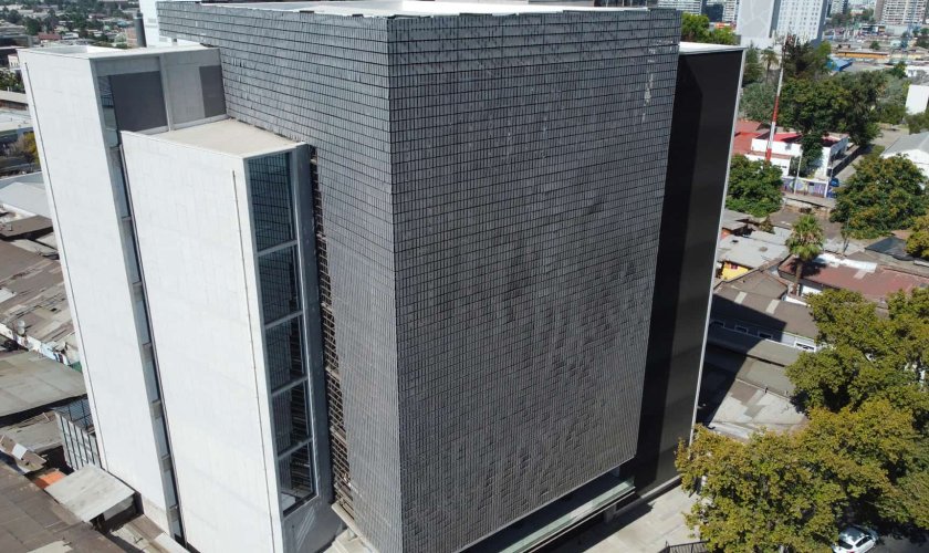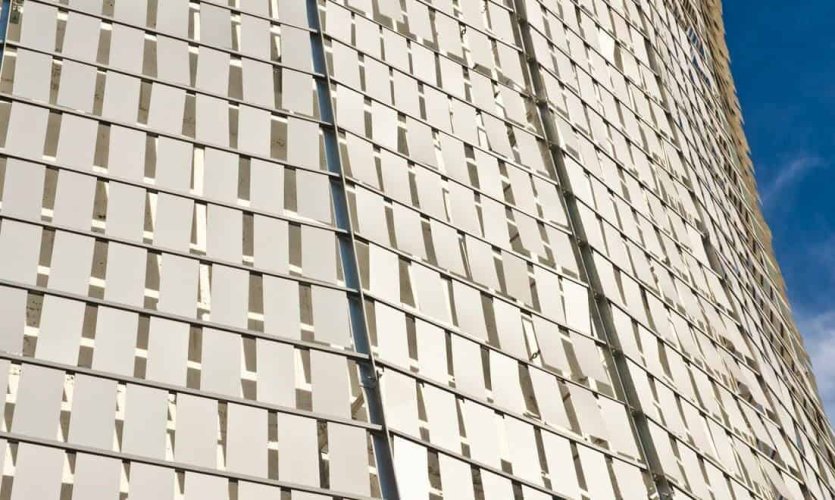 El quiebravista Windscreen está compuesto por láminas de aluminio que pivotean en un buje plástico que se monta sobre una piola de acero. Las láminas forman una superficie que se mueve con el viento. Esta cualidad entrega una fachada kinética siempre cambiante y visualmente muy atractiva.