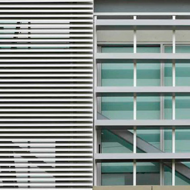 Cortasol lineal que permite regular la transparencia de las fachadas.