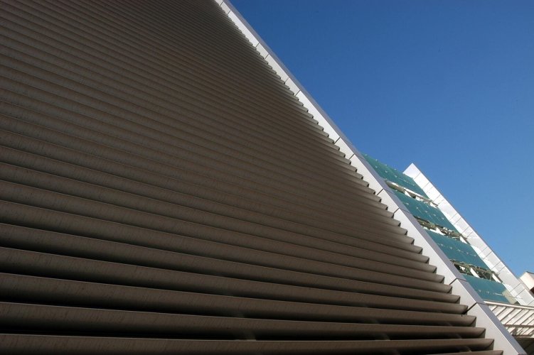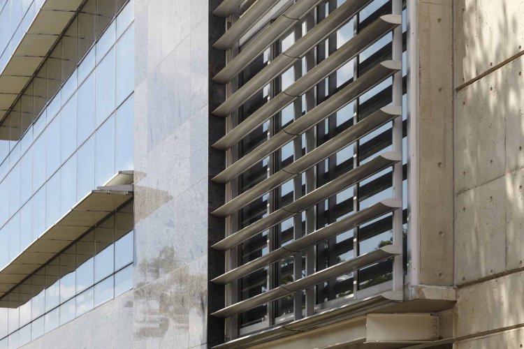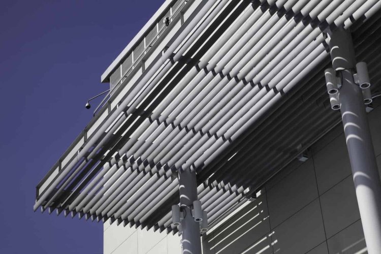 Cortasol lineal que permite regular la transparencia de las fachadas