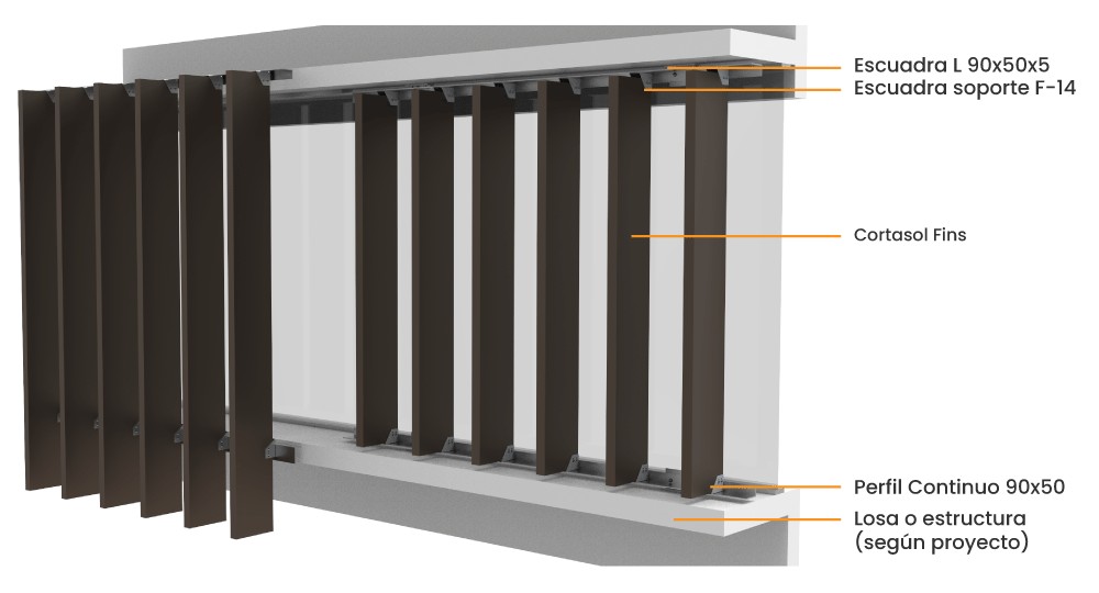 Los Quiebravistas Fins de Hunter Douglas son paneles metálicos de alta resistencia, aplicables para control solar y envolventes.