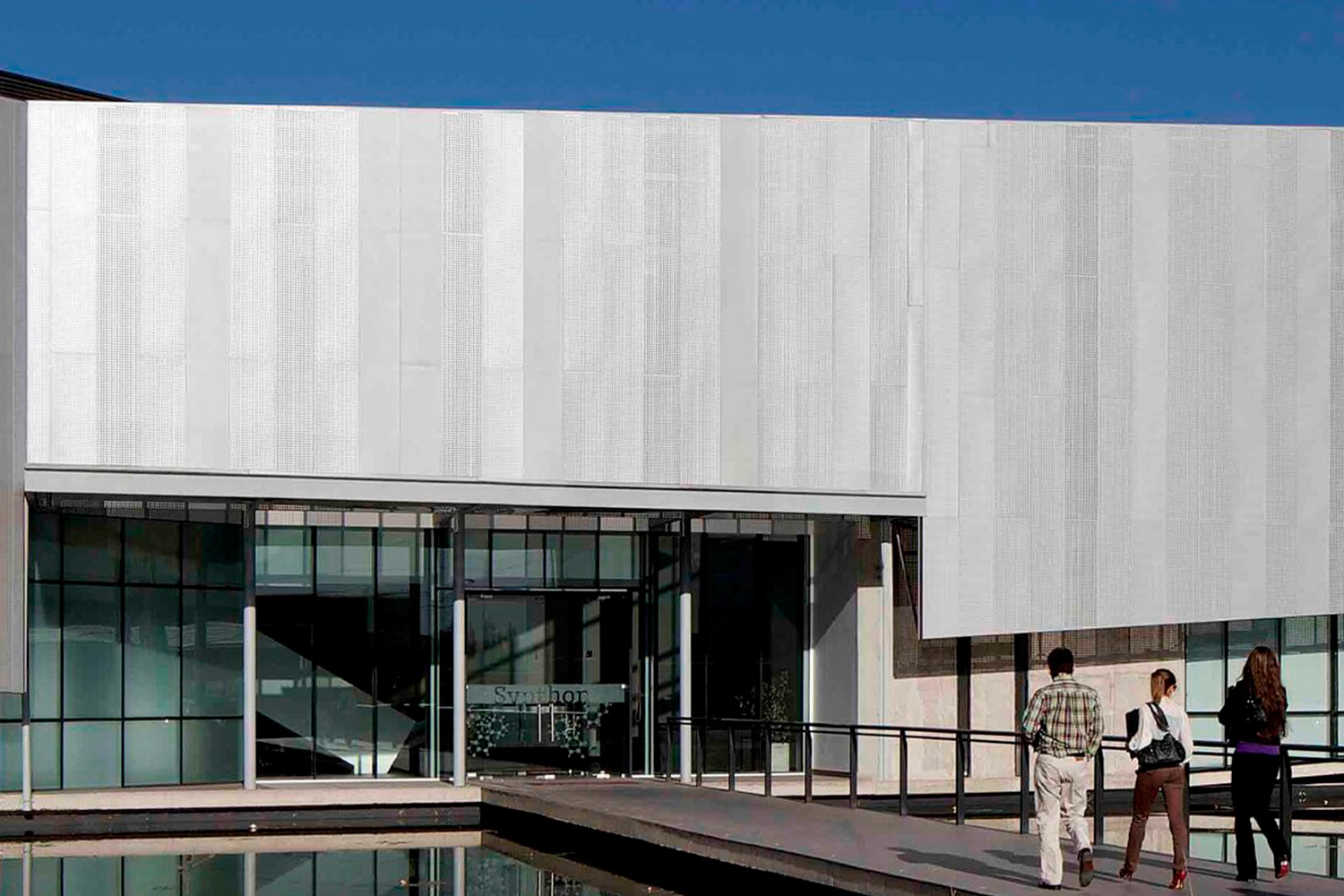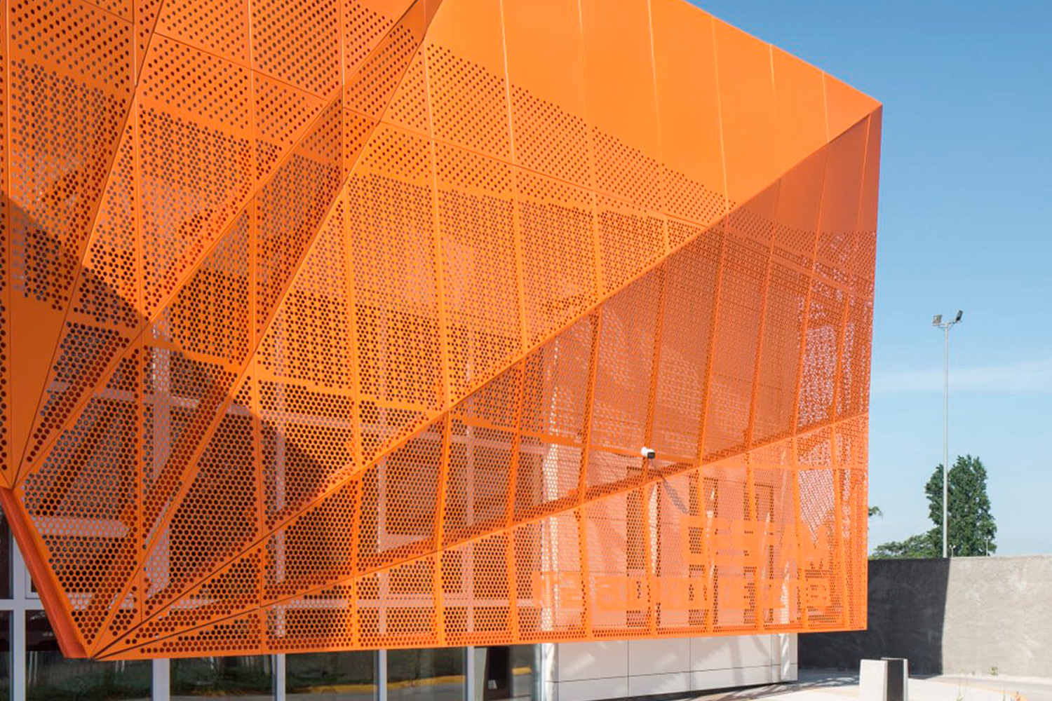 Solución compuesta por paneles rectangulares metálicos, que pueden ser lisos o perforados, los que permiten revestir fachadas con un alto nivel de personalización al disponer de distintas opciones de terminación en cuanto a materialidad, tamaño, color y tipo de perforación.