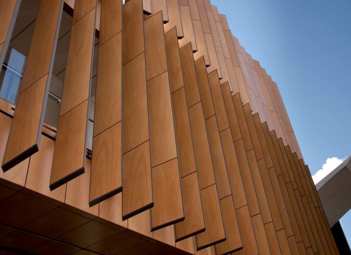 Paneles de fachada ventilada con chapas de madera natural