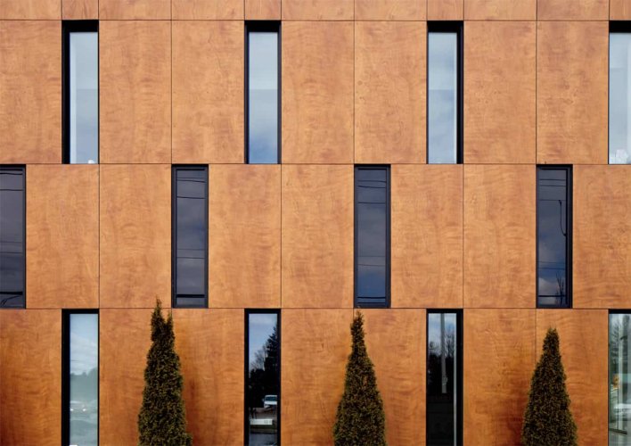 Los revestimientos NATURCLAD-B permiten instalar paneles supertexturados sin necesidad de mantenimiento en fachadas ventiladas. Están compuestos por un cuerpo de baquelita de alta densidad, una textura única en la superficie que no genera patrones repetidos y un film exterior que aporta mayor durabilidad a los paneles y protege el tablero de la radiación solar, los agentes atmosféricos y la suciedad.