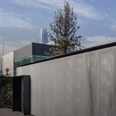 Malla de metal desplegado resistente que otorga cierta transparencia.