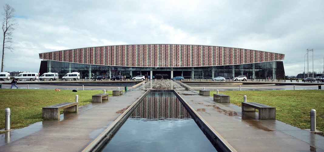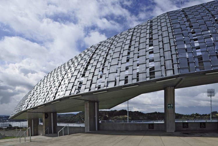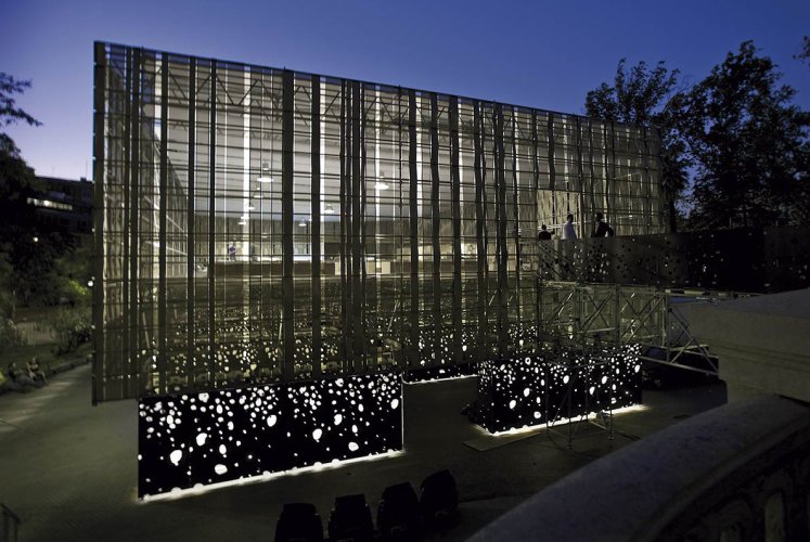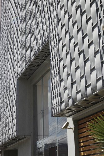 StripWeave es un producto simple, pero que permite lograr resultados muy interesantes. Se trata de cintas o flejes metálicos que van tejiendo entre perfiles tubulares propios del sistema, logrando una imagen final similar a un tejido, pero a gran escala, permitiendo además generar transparencias y opacidades.