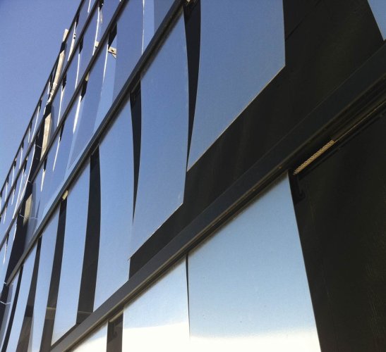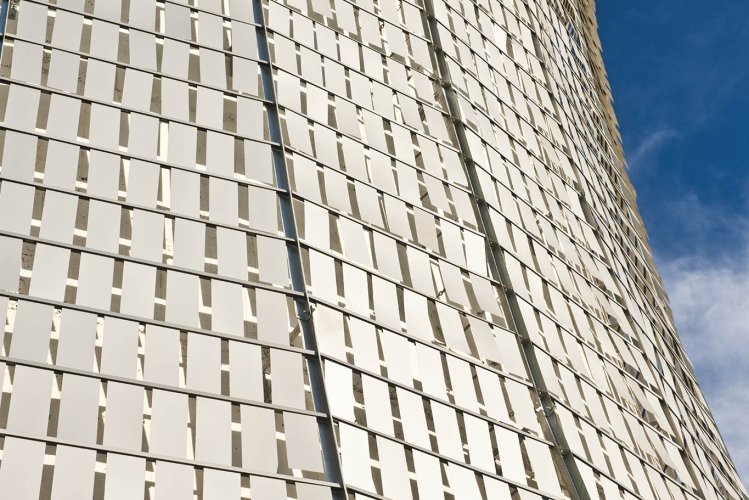 El quiebravista WindScreen está compuesto por láminas de aluminio que pivotean sobre un portapanel. Las láminas forman una superficie que se mueve con el viento. Esta cualidad entrega una fachada kinética siempre cambiante y visualmente muy atractiva.