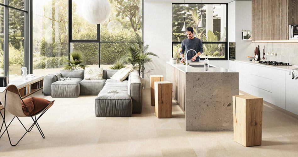 - Lamas XL 1,5m y losetas XL 1m x 1m : suelo moderno