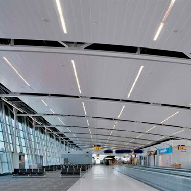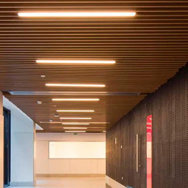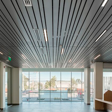 Soluciones de cielos y revestimientos, compuestos por paneles fabricados en madera o metal, con paneles de formatos y largos variados que se adaptan a los requerimientos del proyecto. Pueden ser lisos, perforados o ranurados, de diferentes colores y terminaciones.
