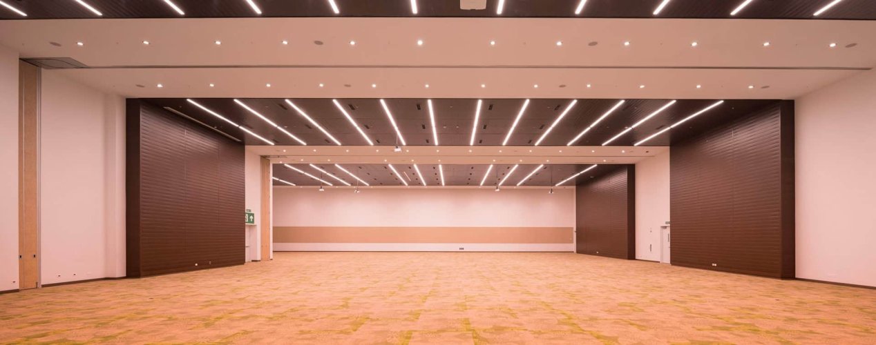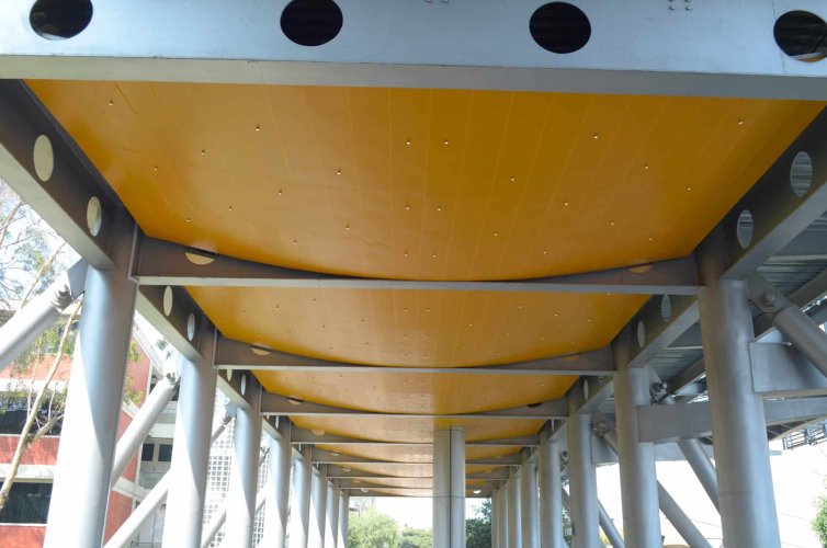 Cielo metálico de terminación lisa con pequeñas canterías entre los paneles