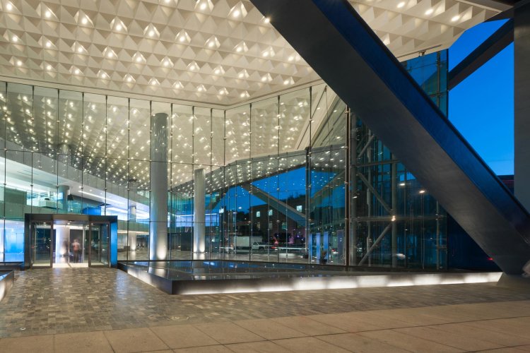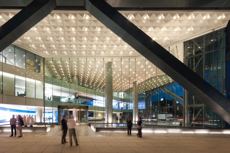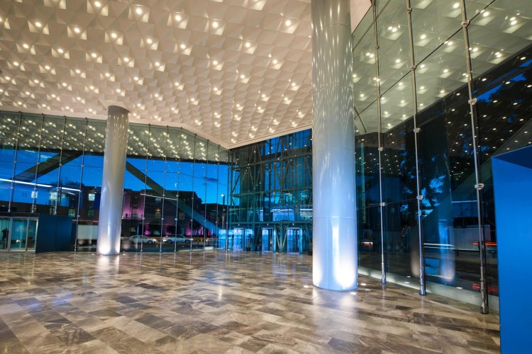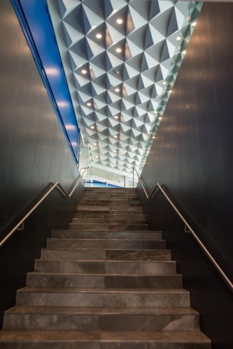 El cielo Piramid de Hunter Douglas es una solución arquitectónica de cielo modular tridimensional, formado por bandejas volumétricas piramidales o tipo cuña, que generan atractivos patrones de luz y sombra. Diseñado para generar continuidad entre los espacios y mejorar el desempeño acústico de los recintos, mientras crea un aspecto elegante y vanguardista en las superficies.