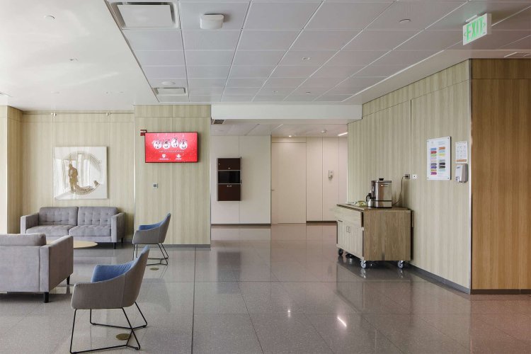Cielo metálico de aspecto pulido con sistema de suspensión en forma de grilla de máxima registrabilidad