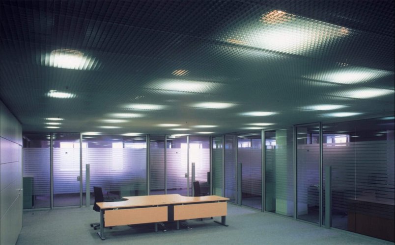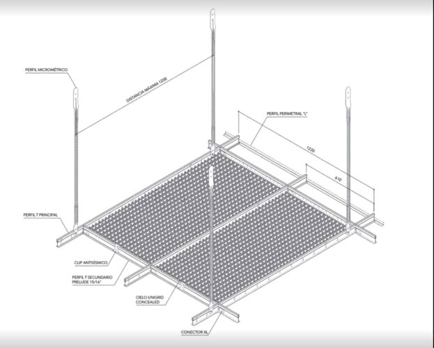 El Cielo Unigrid es un cielo de láminas metálicas que conforman una grilla modular sustentada sobre un sistema de perfilería de suspensión que queda oculta.