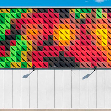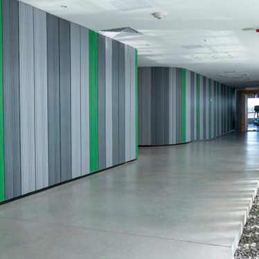 Revestimiento de geometría en base a líneas onduladas que asemeja la plancha calamina inglesa.